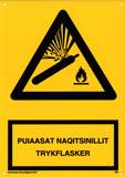For at sikre korrekt skiltning ved installationer med trykflasker, har Grønlands Elmyndighed fået produceret et skilt der opfylder de gældende regler*.